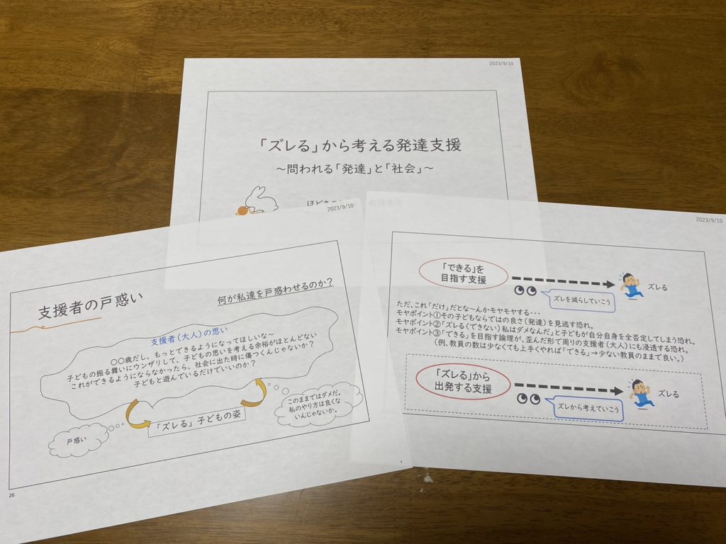 感想として、「私もズレてます」という意見が少なくなかったです。「ズレる」という言葉は、子どもだけでなく、私達大人にも当てはまることなのかもしれません。「ズレる」というある意味、「特別」なことなのに、実は「普通」なことなのでしょうか?そうだとしたら、ズレることが「特別」であり、「普通」でもあると思わせていることは何なのでしょうか?「ズレる」という言葉が暗に示していることから見えてくるものもありそうですね。
