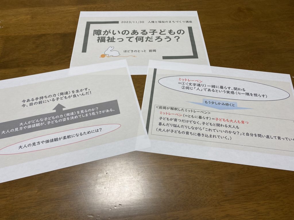 演題は「障がいのある子どもの福祉って何だろう?」でした。