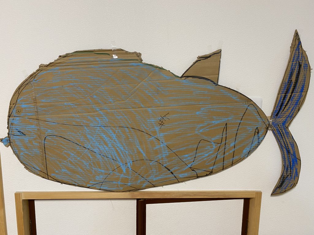 ストカールさん、友達、スタッフと一緒に描いた大きな魚。
