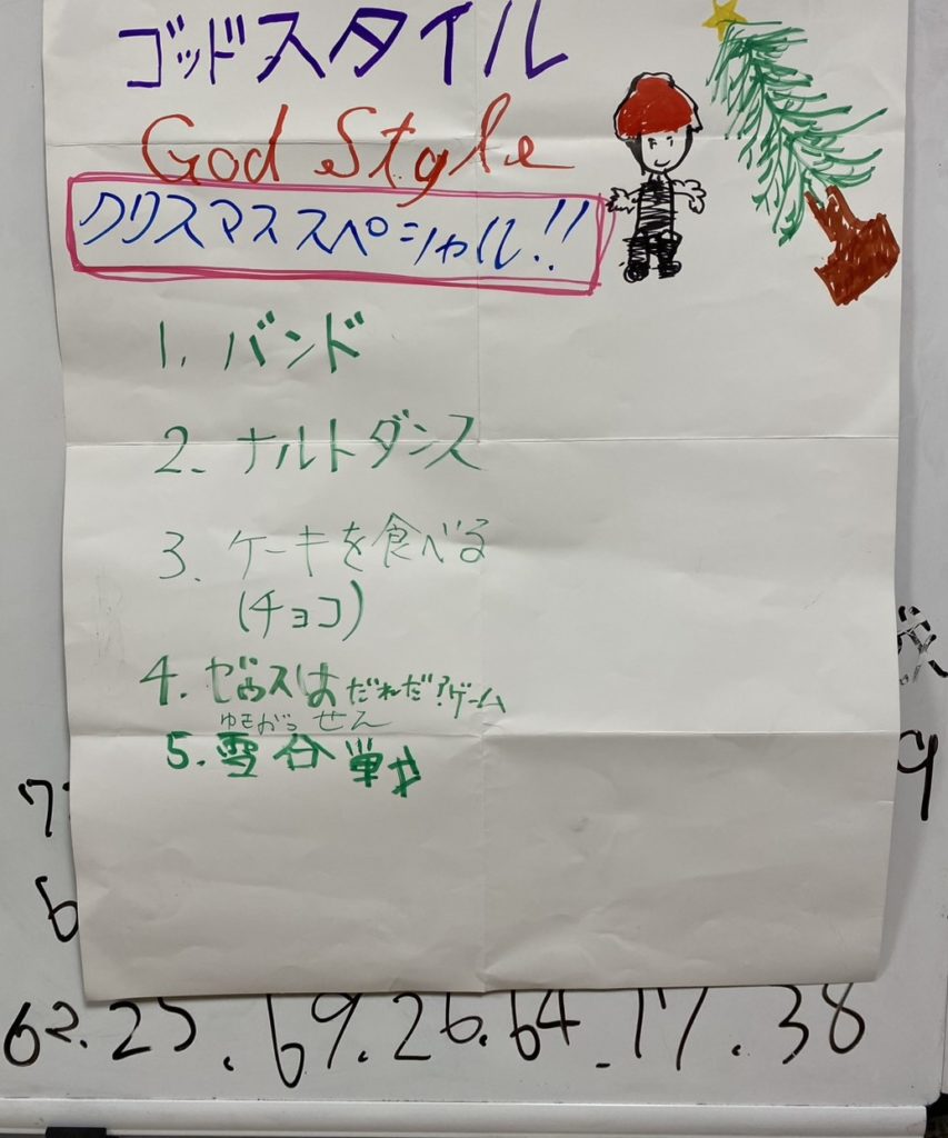 写真について触れておきます。これは、クリスマスのイベントで使われたものです。子どもとスタッフがお互いに神の名前を付けて呼び合っており、その神々の集まりである「ゴッドスタイル」が企画したイベントになります。ちなみに私は「ゼウス」と名付けられています。