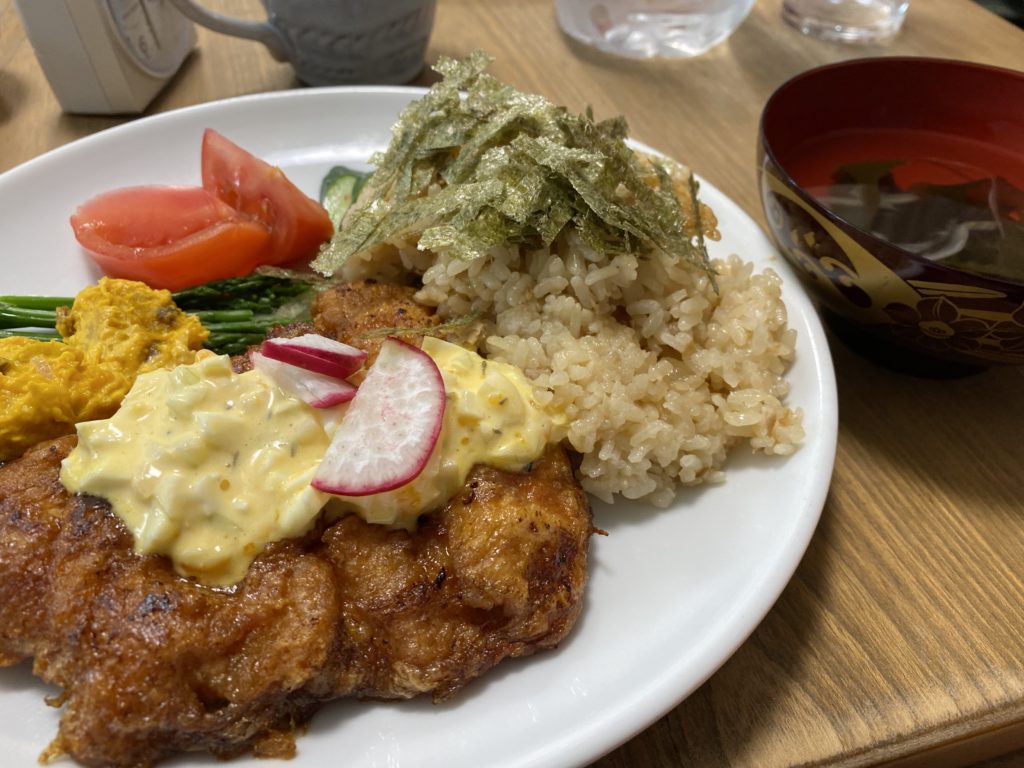 チキンの大きさがビッグサイズ!ちょうど良い味付けのタルタルソースと合わさってめちゃくちゃ美味い!ご飯がどんどん進みます。