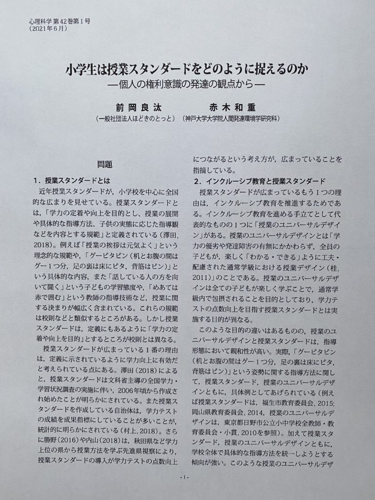 授業スタンダードに関して、子どもの声を取り扱った研究はこれが初めてになります。